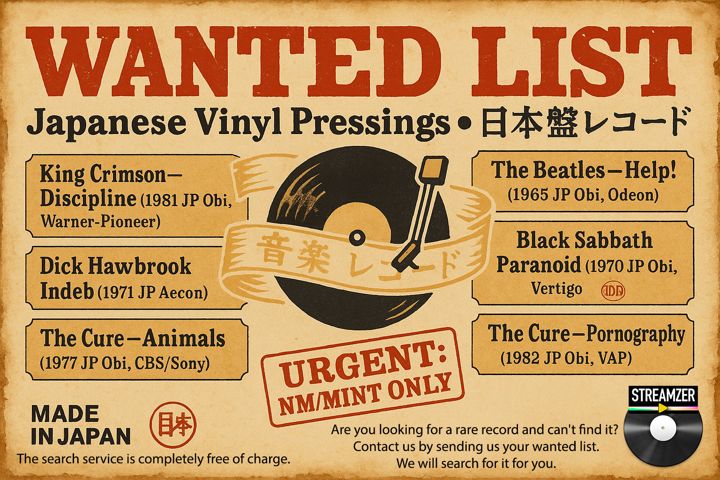 At Streamzer, we know every collector is on the hunt for unique vinyl gems. That’s why we offer a Wanted List system to help you track down those hard-to-find records!